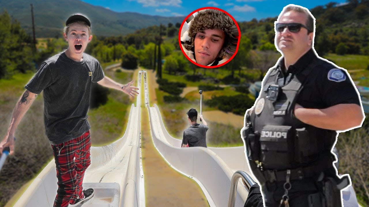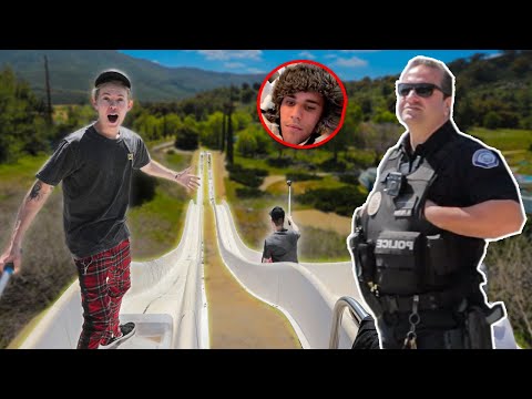 We went to abandoned waterpark and it had crazy huge mega slide.... then the cops come.... and things got interesting
